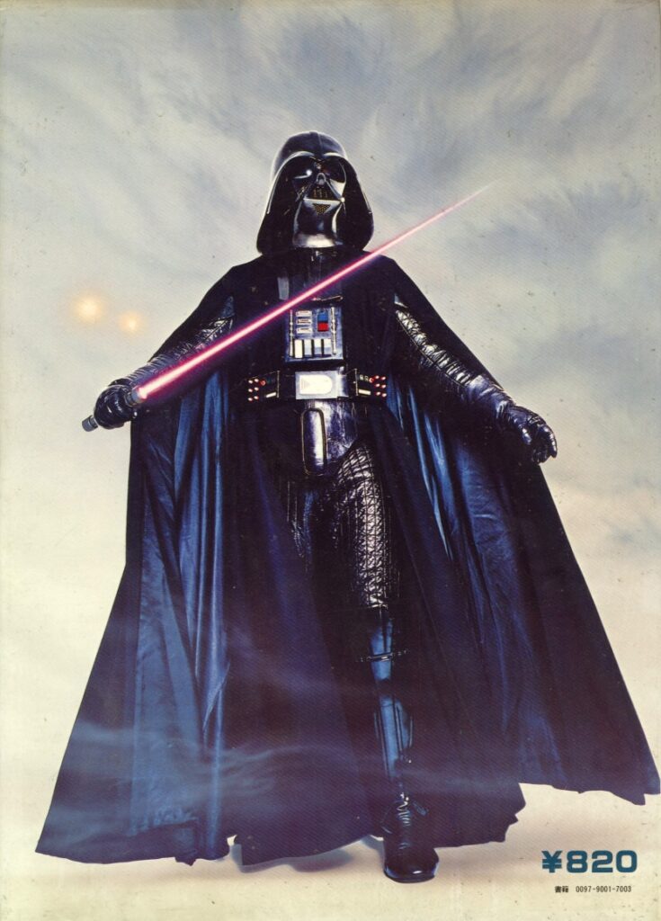 Here’s something we’ve had around for a while. You’ll see versions of this Star Wars poster elsewhere, but with “Darth Vader” printed on it in big letters—like you need to be told. Many vendors claim their posters are originals from 1977. Maybe, maybe not, but this one is the real thing (though Star Wars opened in Japan in 1978). You can tell it’s real because its price of ¥820 appears at lower right. That detail went away not long after the poster’s first run. It’s a nice piece of art, and an entertaining symbol of good eventually triumphing over evil, a long time ago in a galaxy far, far away.