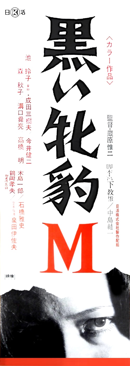 This interesting tateken style promo was made for the Reiko Ike action flick Kuroi Mehyô M, known in English by the cool title Black Panther Bitch M. It premiered in Japan today in 1974, amidst Ike’s heyday when she was a huge star, appearing in more than twenty films in three years. Among those were her Girl Boss and Terrifying Girl’s High School movies, which vary in quality but are all worth a watch. There’s a flipside to this poster but we couldn’t locate a good scan of it. We’ll keep an eye out. What we did locate, though, was the movie itself, which we talked about several years back. You can check that out at this link, if you’re interested. Also, since this is a text heavy poster it made for a good excuse to include a nice visual of Ike, below. She’s probably the most featured actress on our website and we have many more images of her we’ve yet to scan and upload. Keep an eye open.