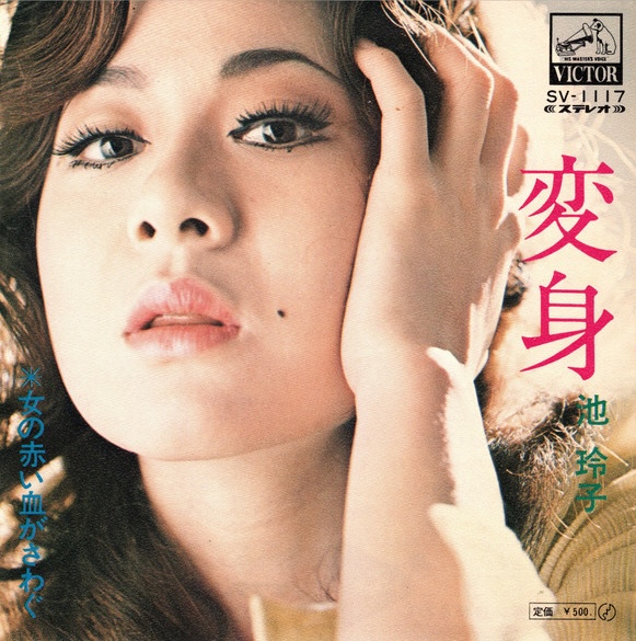 Actresses from Japan’s extremely popular pinku genre didn’t just brandish weapons in their movies and get naked for promo images and public appearances. Some sang, some very successfully. Reiko Ike put out a few well received platters such as the one you see above released by RCA Victor in 1972. She had already released a full album in 1971, which we discussed here. This was the follow-up. It was a single with 変身, or “Transformation,” on the A-side, and on the B a tune called 女の赤い血がさわぐ, which means “a woman’s red blood stirs.” What can you say about a title like that? It’s fantastic. Take note popsters—titles matter. The music is also nice, in a go-go sort of way. You can listen to both songs here.