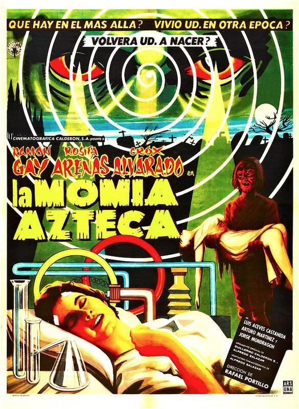 We called this a gem earlier, but we were just being cute. It’s not good. But to be fair, it’s no worse than most Hollywood mid-1950s sci-fi movies. For example, have you ever seen The Astounding She-Monster? Ouch! This particular flick at least has in its favor a specific quality that makes it tolerable: it’s exotic. The exteriors lensed in the majestic ruins of Tenayuca probably achieve that all by themselves. Are you in the market for bad but exotic sci-fi? This could be just the ticket. Watch it with tequila shots. La momia azteca premiered in Mexico today in 1957.