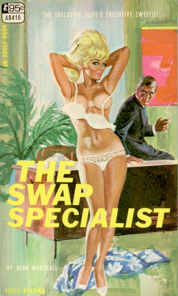 Above: a cover for The Swap Specialist, credited to Alan Marshall, often a pseudonym for authors like Donald E. Westlake and others. In this case, Alan Marshall is the only information available. The book is from 1967 with art by Robert Bonfils.