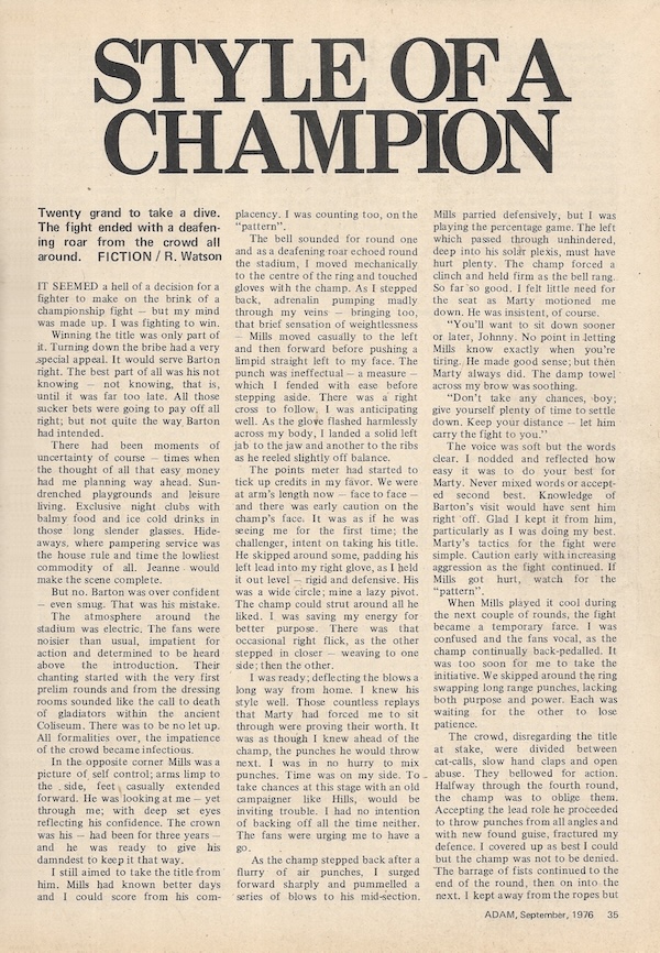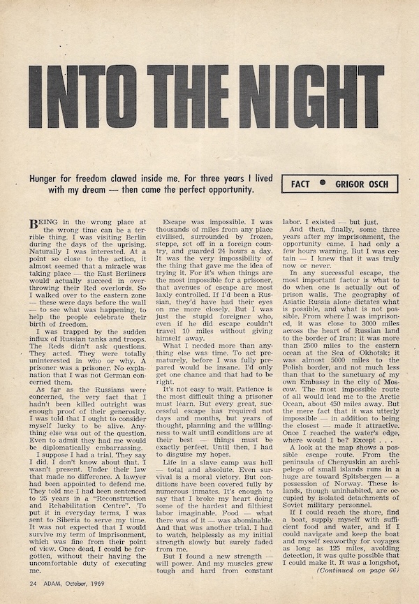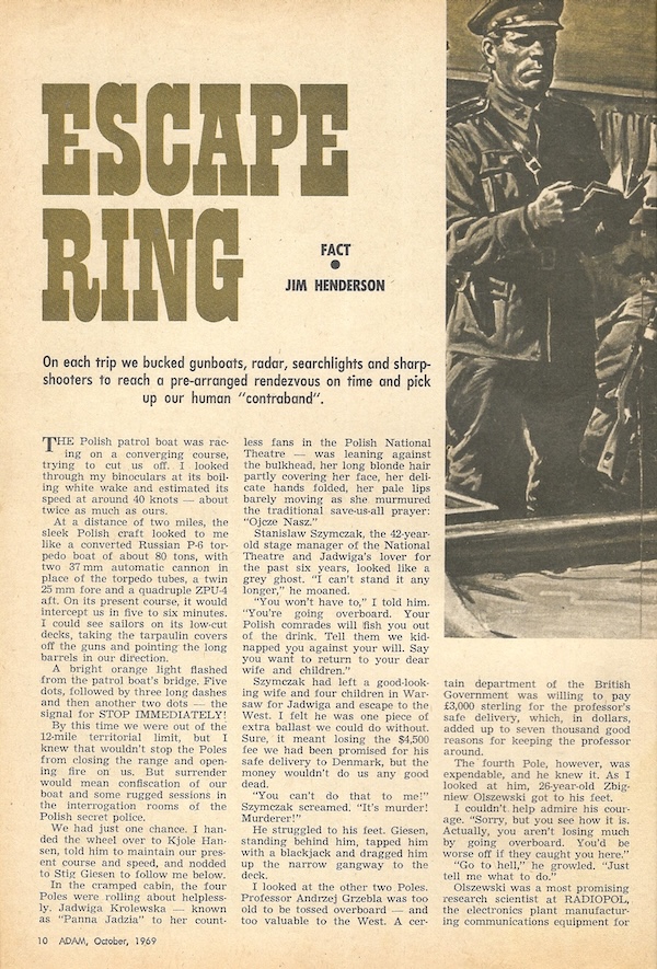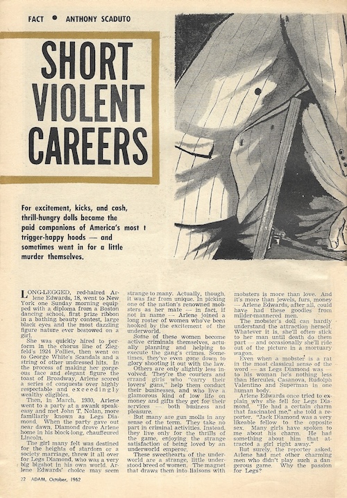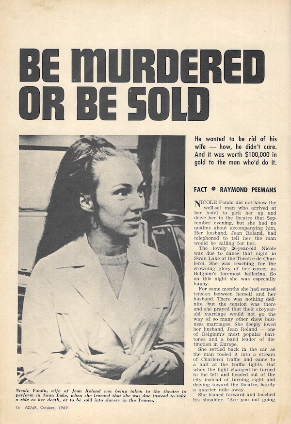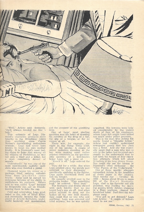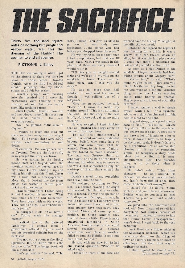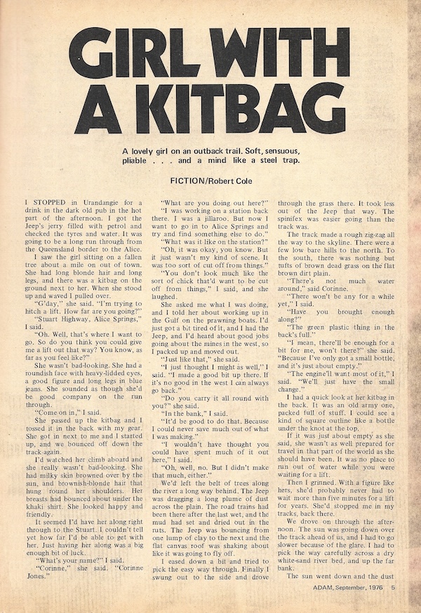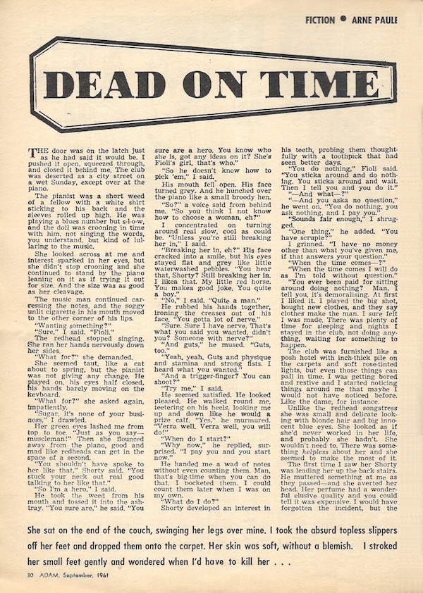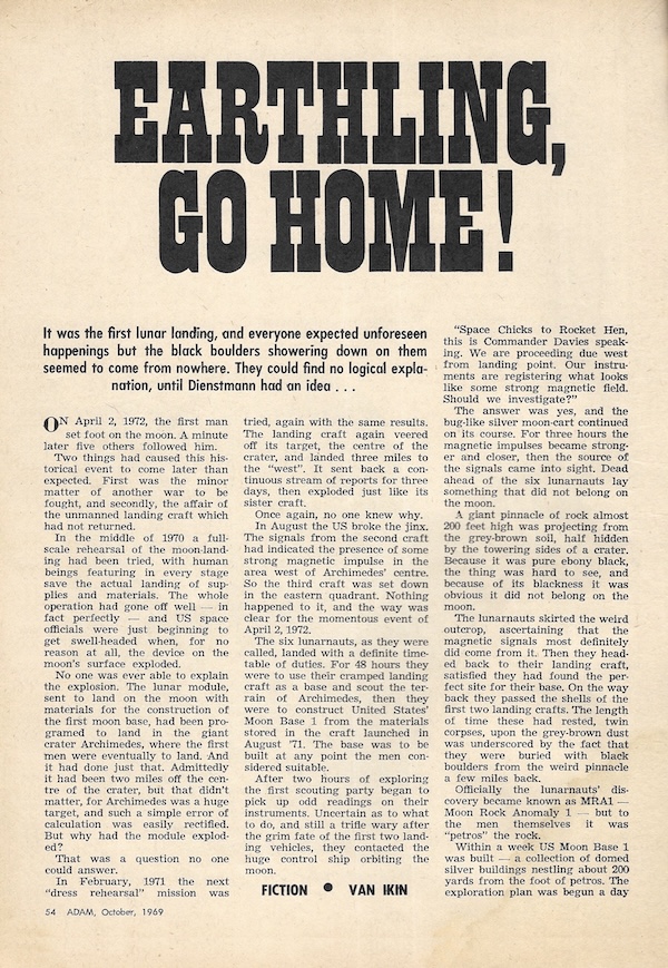 As we paged through this Adam we found numerous fascinating features, such as the factual stories “Witchcraft Love Cult,” about a man captured by Panamanian Indians, and “Be Murdered or Sold,” about a woman trafficked into sexual bondage in Yemen. There’s also fiction from veteran Adam contributor John P. Gilders called “The White Man’s Burden.” That term, for those who don’t know, refers to the idea that white men were morally obligated to “civilize” inhabitants of the lands they colonized. The story completes an unusually interesting set of literary contributions in a magazine that never fails to entertain.