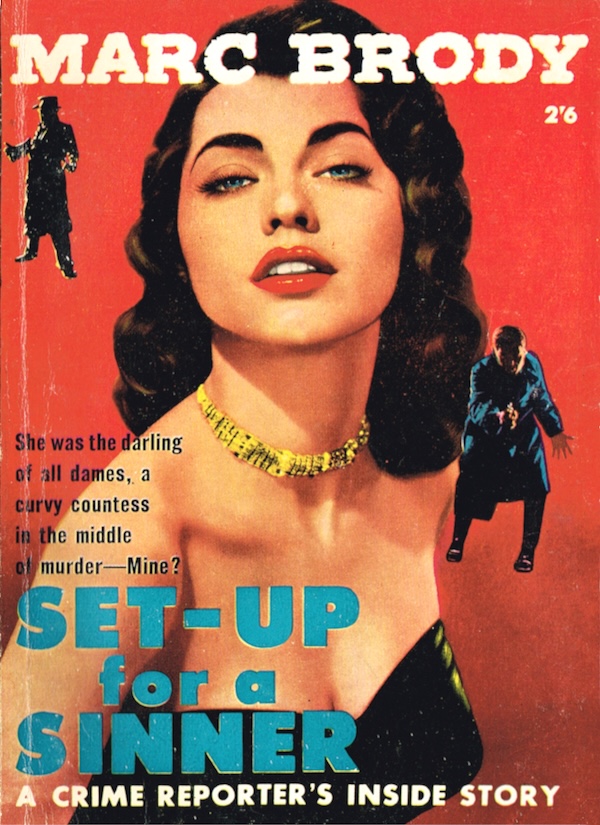 Valerie Allen was an obscure U.S. actress who started her career in cinema before quickly migrating to television, appearing in shows such as 77 Sunset Strip, Gunsmoke, and Sea Hunt. Probably her most interesting movie for our purposes is 1958’s I Married a Monster from Outer Space, which we watched last year. Her earliest roles were in 1956, but when Sydney, Australia-based Horwitz Publications used her image in 1957 for this cover of Set-Up for a Sinner she had not yet scored a credited screen role. This once again confirms our theory that Horwitz habitually used unlicensed handout photos for its cover art. There was nothing to be gained by using a completely unknown American actress over an Aussie model except not having to pay a modeling fee, so they used whatever film promos came into their publishing offices, and didn’t pay for them. Well, Allen may have been obscure, but this bright cover is the opposite. We think it’s one of Horwitz’s best.