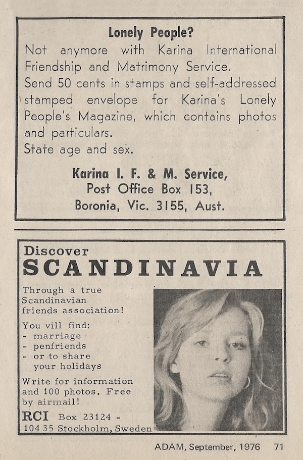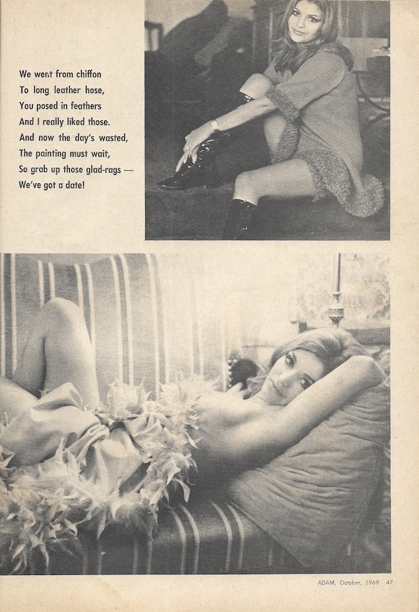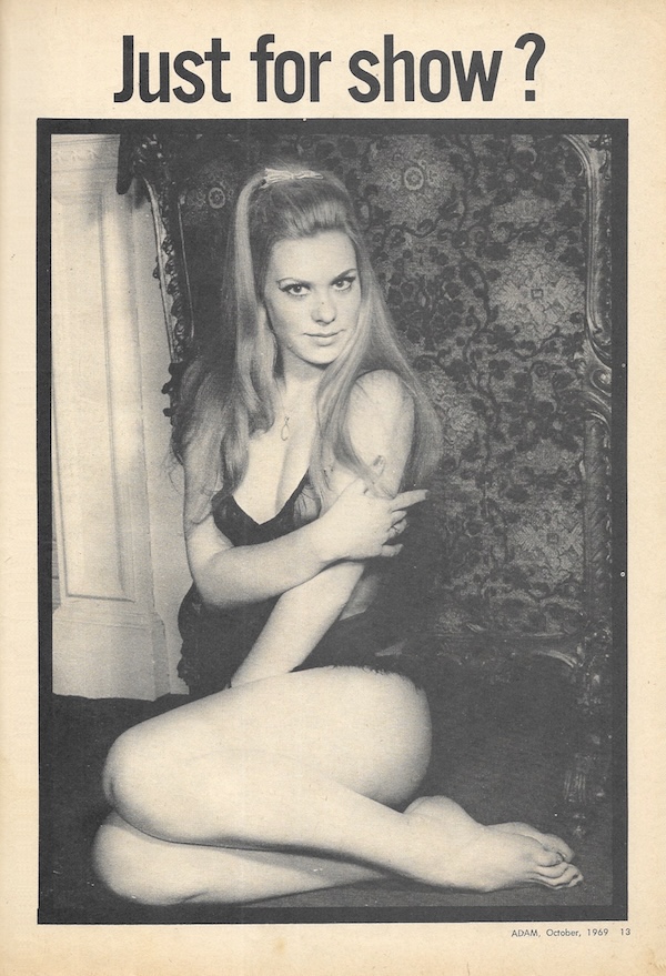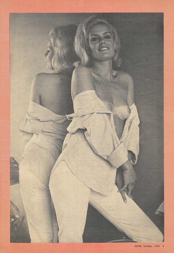 This issue of Adam is one in which erotica and pulp style literature coexist to nice effect, with beautiful interior illustrations by Jack Waugh and others interspersed with photos of cinema sex symbols Andrea Lau and Karin Schubert, a snippet on xxx star Marilyn Chambers, and semi-nude photos of unknown models. When people ask why we have vintage nude photos on our website this is exactly why—it’s relevant to what was produced by post-pulp publishers throughout the late ’60s and the entirety of the 1970s.