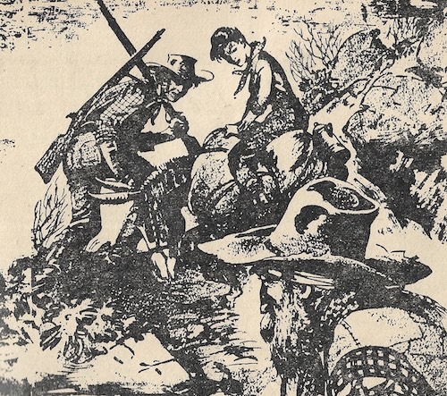 As a side note, the reason the art put us in mind of pushy door-to-door solicitors is because we have our own unwanted (sort of) salesman. While we have numerous stores in the pueblo, we get our eggs from a man we call “The Egg Guy.” He brings farm fresh eggs to people’s doors, which is fine, but the problem is he tries to sell us dozens a week. We tell him over and over we can’t eat that many eggs, but he doesn’t get it. So while we do buy from him (the eggs are excellent), we also spend a lot of time turning him away. We admire the hustle, though.