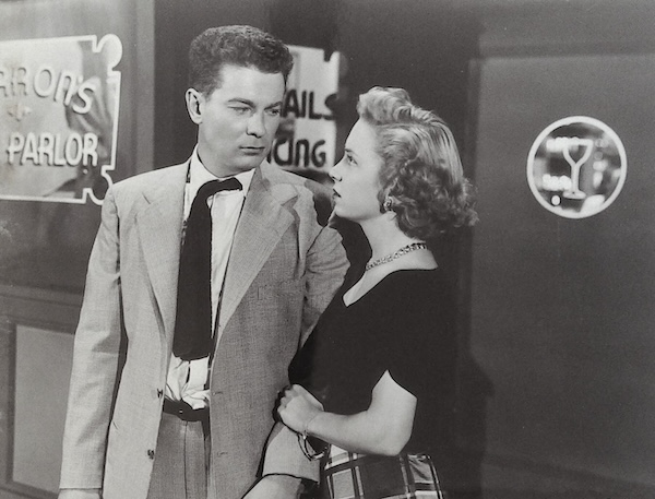 If there’s a serious flaw in Tarnished, it’s is that the internal logic falters somewhat when the protagonist actually does, in fact, admit that he was in the marines to one of his antagonists by way of explaining why he’s about to commit a heroic act. If he’d left the man with no explanation for the subsequent heroism, the movie’s point would have been even sharper. The screenplay was adapted from a novel by a twenty-five year old author named Eleanor Mayo, and we have a suspicion she had more interesting things to say in her narrative. Maybe we’ll try to track it down. Tarnished, with Arthur Franz as the strong but silent hero and Dorothy Patrick as his love interest, premiered in the U.S. today in 1950.