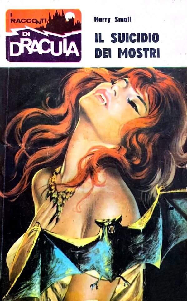 Usually our Italian horror covers feature art by Benedetto Caroselli, but this time you’re looking at the work of the talented Mario Caria on these vampire themed Edizioni Wamp covers for Harry Small’s Il suicidio dei mostri (“the suicide of the monsters”) and Frank Graegorius’s La donna che venne dal gelo (“the woman who comes from the frost”). Small was a pseudonym used by Mario Pinzauti, while Graegorius was one used by Libero Samale. As usual, the pen names on these Italian genre novels were meant to create the impression of U.S. origins, but the actual writer was always credited as translator. These are from 1970 and 1969.