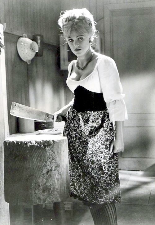 Swedish actress Susan Denberg appears in the above promo photo, which was made for the 1967 Hammer horror flick Frankenstein Created Woman. The movie was an entry in a seven part series of Frankenstein movies, mostly pretty bad. As for Denberg, who was a Playboy centerfold in 1966, her acting résumé is scant—she made two movies and appeared on three television shows. Later, she became a subject of intense tabloid interest. You can see an example here.