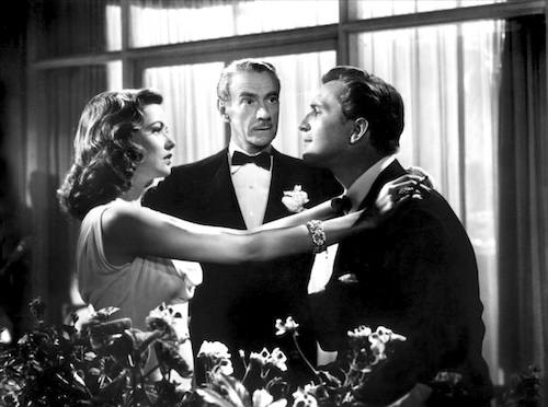 Above is a Spanish poster by Josep Soligó Tena for La casa de la colina, which was originally released in the U.S. as The House on Telegraph Hill. The movie tells the story of a Polish concentration camp survivor—played by Valentina Cortese—who upon release takes the identity of her dead friend, and later insinuates herself into the lives of the dead woman’s San Francisco relatives. This identity swap is the classic Hitchcockian MacGuffin, which is to say it initially seems to be the plot driver, but later isn’t important at all. While Cortese’s labyrinthine lie is always a worrisome background element, the movie is really about how she finds herself embroiled in an inheritance mess and a love triangle. We thought this movie was quite good, but you do have to ignore bits like the improbable placement of a child’s playhouse above a sheer drop (in a sense, another MacGuffin, as the threat of falling has no bearing at all on later developments). Highly recommended movie, and it has nice San Fran exteriors as a bonus. The House on Telegraph Hill premiered in the U.S. in 1951, and as La casa de la colina in Spain today in 1952. See more work from Tena here.