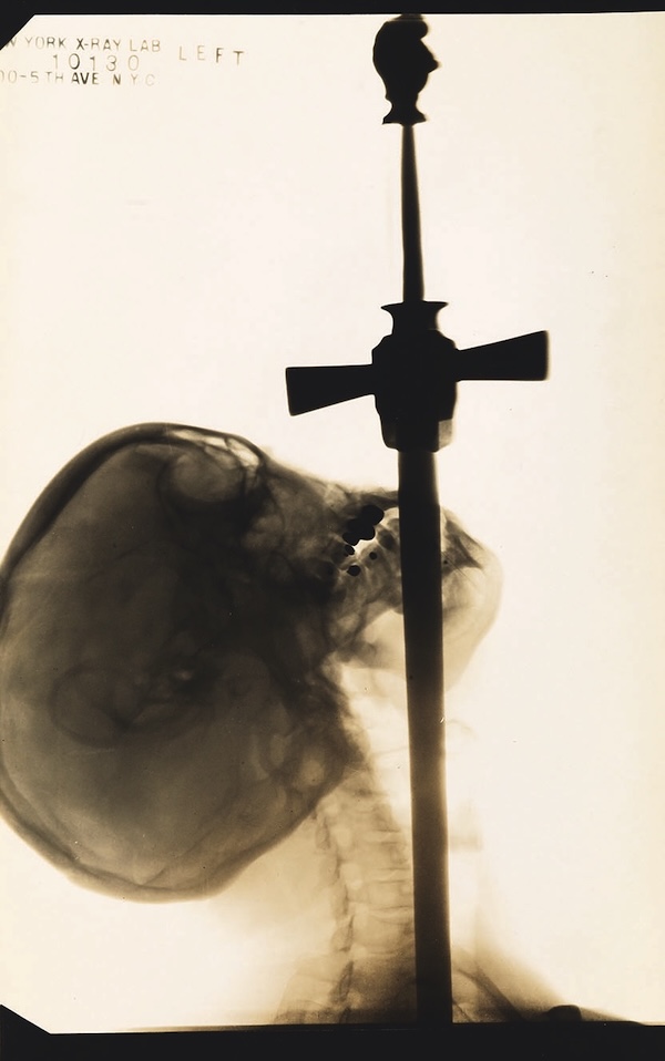 As you know, scores of pulp and mid-century novels were set in circuses and carnivals, such as the examples here, here, and here, so we couldn’t pass this up. It’s an x-ray of a circus sword swallower billed as the Mighty Ajax, real name Joseph Milana, who was pretty famous in his day.