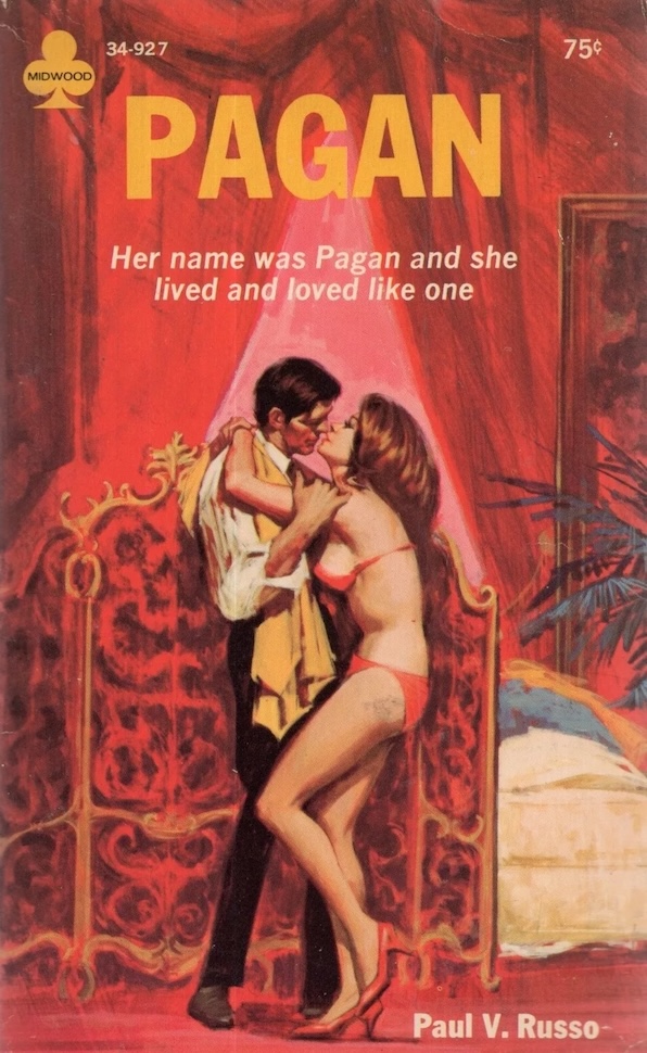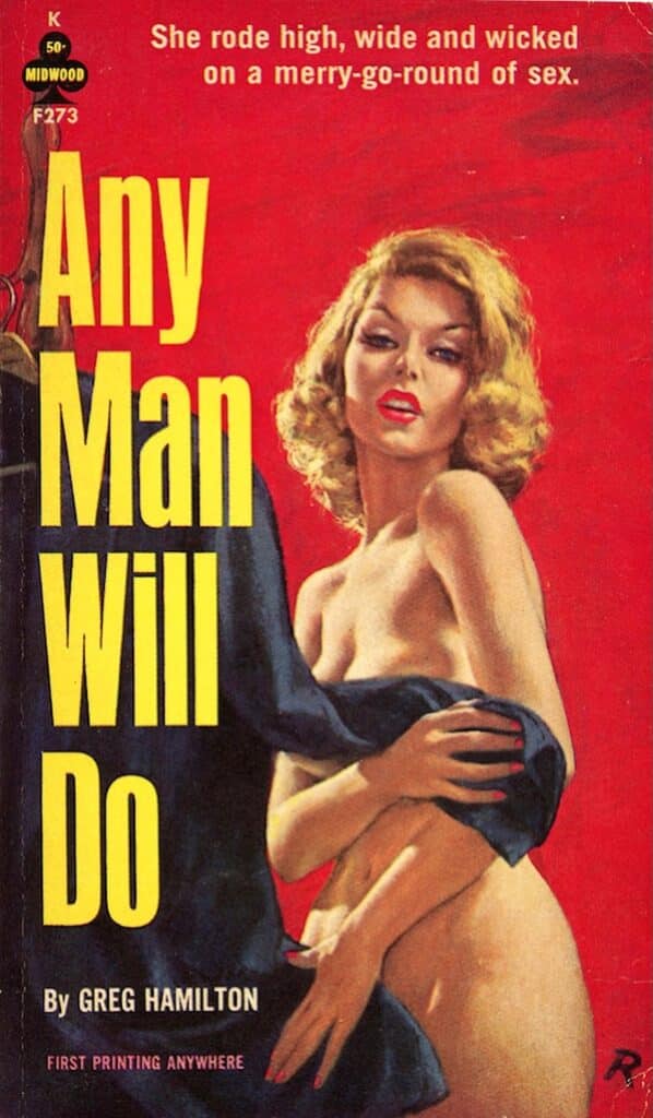 As you can probably tell from our recent book focus, over the holidays we went through a number of novels. Connie Nelson’s sleazer Woman Aflame, published by Midwood in 1965, is so rare we can’t even find mention of it online. It’s basically the anatomy of an extramarital affair, as self-sufficient career woman Sally Springer starts bedding down behind her husband’s back with a stranger named Victor. Most of the story deals with him, so a rear cover blurb mentioning a “parade of virile strangers,” is a bit misleading, but about three quarters of the way through she indeed moves on to another man named Tim, then one named—improbably—King. But Victor is never out of her life because he had an ulterior motive all along: he’s a pornographer and has been non-consensually filming himself with Sally. She’s trapped, and blackmailed into continuing. Nelson writes all this with some depth and introspection, though not necessarily great skill. In the end Woman Aflame isn’t bad, but it isn’t recommendable either. Next.