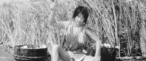 Satô immediately begins trying to sidle up to his buddy’s widow, and Jitsuko fairly quickly succumbs to his overtures, creating the possibility that Nobuko will have to survive alone—which she can’t. She can’t ambush, kill, and strip soldiers’ valuables solo. She feels angry, powerless, and dispairing in no particular order. Then a strange masked man arrives in the marsh, and she suddenly sees a way to separate the lovers. But the consequences of doing so could spin out of control.