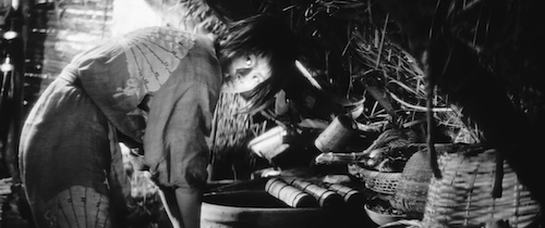 Set during Japan’s 14th century Nanboku-chō period during a war which has led to mass population displacement, impending starvation, and desperation, humanity’s worst instincts—always present to some degree—have come to the fore. Mother and daughter Nobuko Otawa and Jitsuko Yoshimura live in a marsh and survive by killing wandering soldiers and selling stolen weapons and armor. They’re on their own because Nobuko’s son Kichi—Jitsuko’s husband—was taken off to war along with their neighbor Kei Satô. When Satô finally returns he’s alone. Kichi was killed.