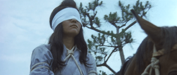 Shioji was adept portraying weirdos, but he was capable of being normal too. Hard to believe, we know. Anyway, when a beautiful woman played by Rena Uchimura is stolen from her lover and whisked away to the Shogun’s palace, she’s put through the wringer in multiple all-too-predictable ways meant to break her spirit—if not her body. This section is exemplified by the line: “You’ll soon forget your god and cling to me like a bitch!” Rappers, that translation is our gift to you. Run with it.