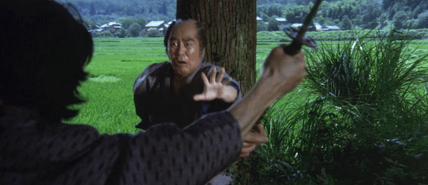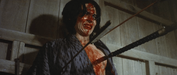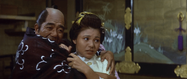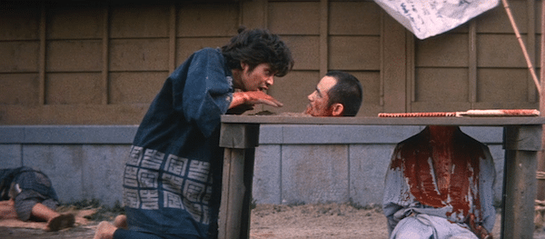 Eventually Uchimura’s little sister Mitsu is brought to the palace for leverage. In American movies children are rarely exposed to serious harm. You get no such assurances in Japanese cinema. The Shogun gleefully beats the kid, stomps her head a few times, then has her eyes burned out with a hot poker. Saw never even contemplated such degeneracy. You’re thinking right now, “Who in the everloving fuck would want to watch this?” Well, as far as we know, millions of Japanese cinemagoers. The plot continues, but we’ll stop there. Wouldn’t want to spoil anything for you.