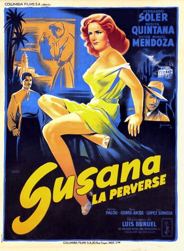Back in 2010 we discussed the 1951 Mexican drama Susana and shared a poster from that country. We recently found this French promo and liked the vibrancy of it, so we’re augmenting our coverage of the film. This piece was painted by Russian artist Boris Grinsson, a great talent who worked mostly in France and who we’ve highlighted often. Just feast your eyes on this example.