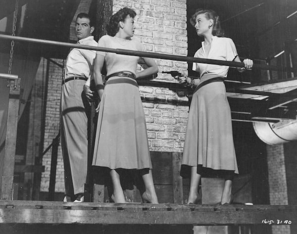There are Droste effects and Dutch angles that radically shift viewer perception. Here Gordon cleverly echoes both ideas. This abyssal visual, which predates Hitchcock’s more famous Vertigo flourishes, is the moment when Lupino’s character realizes that—try as she might—the comforting anonymity she’s briefly gained through flight was an illusion, and her murderous husband will always be on her trail. The rest of the film is as well constructed, from the visceral car crash to a railyard set piece to a wild, shadowy climax in the mill where all the trouble began. We haven’t yet seen a Lupino film that failed to deliver at least some value, thanks to her. We’ll keep watching them and hope it never happens. Woman in Hiding premiered today in 1950.