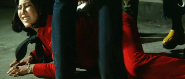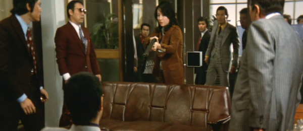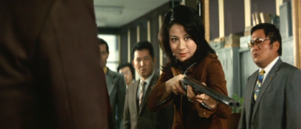 In the opening Reiko is thrown in prison for trying to kill the yakuza leader responsible for the death of her sister. A credit sequence montage shows us how she’s toughened in a juvenile facility. When she’s released she needs to help a friend, one of the previous parolees, out of a financial jam, which brings her back into contact with the organization of the man she tried to kill. Synchronism? Well, screenwriting.